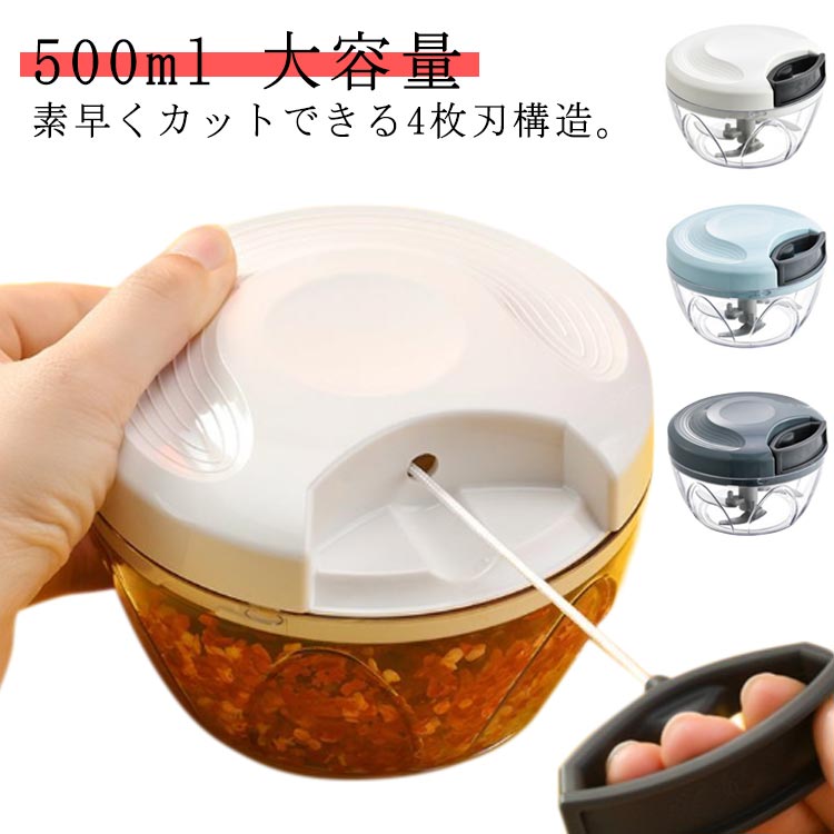 ■引っ張る みじん切り 4枚刃 みじん切り器 チョッパー 手動 フードプロセッサー 4枚刃 フードチョッパー 離乳食 プロセッサー 引くだけ キ