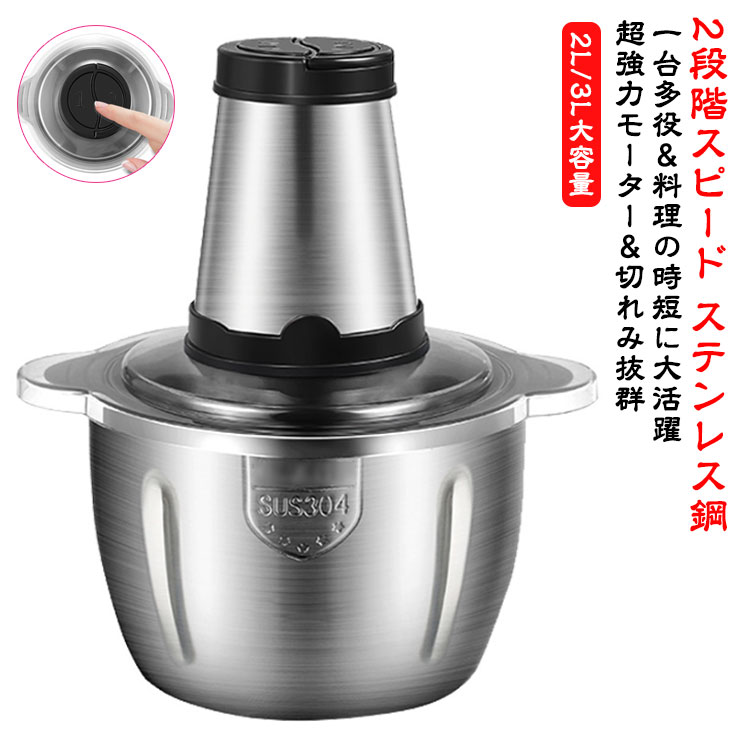 ■フードプロセッサー 2L/3L 大容量 ステンレス ブレンダー ミキサー 強力 4枚刃カッター 大根おろし 氷 砕ける 2段階スピード 電動 チョッ