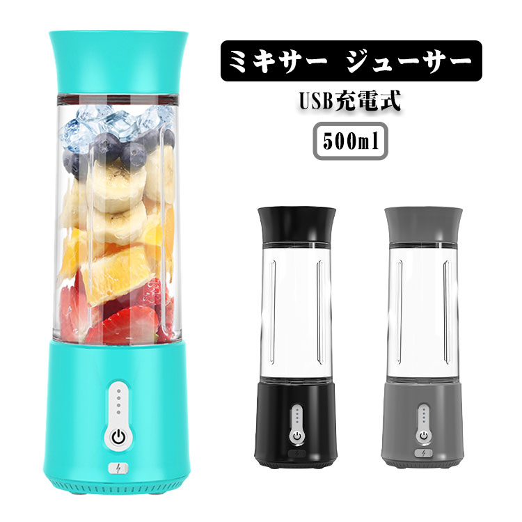 ■小型 ジューサーミキサー 氷も砕ける スムージー作れる 500ml USB充電式 ミキサー フードプロセッサー ジューサー 野菜 果物 離乳食用 洗