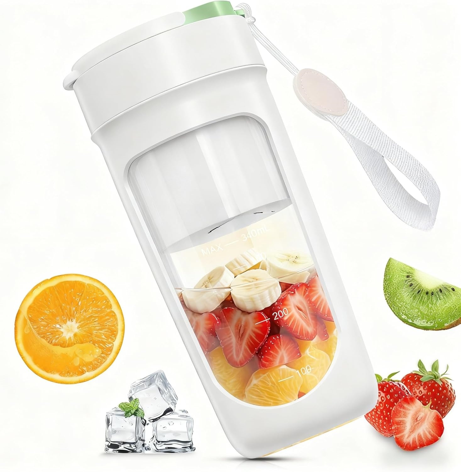 小型充電式ミキサー 22000回転高速 氷対応 340ml 1台多役 Type-C充電 持ち運び便利 スムージー・離乳食対応
