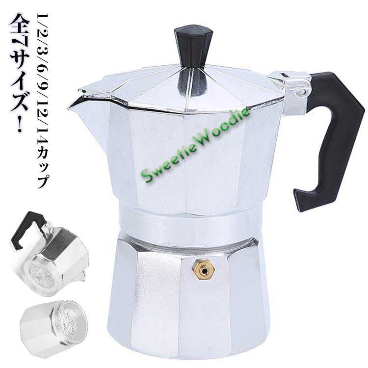 直火 コーヒーメーカー 家庭用 全7サイズ エスプレッソメーカー 1/2/3/6/9/12/14カップ コーヒーポット コーヒーマシン アイスコーヒー