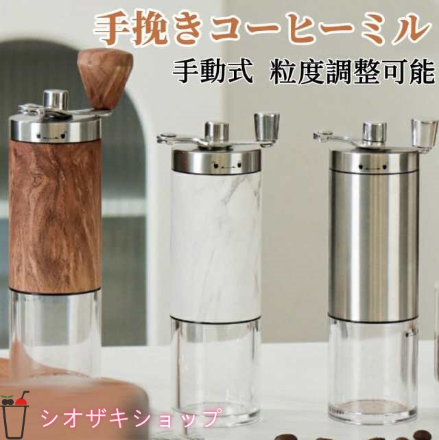 ■手挽きコーヒーミル 手動式 木目調 ステンレス製 コーヒーメーカー 手動ハンドル コーヒー豆挽き 珈琲ミル 手回し 水洗い可能 携帯便利