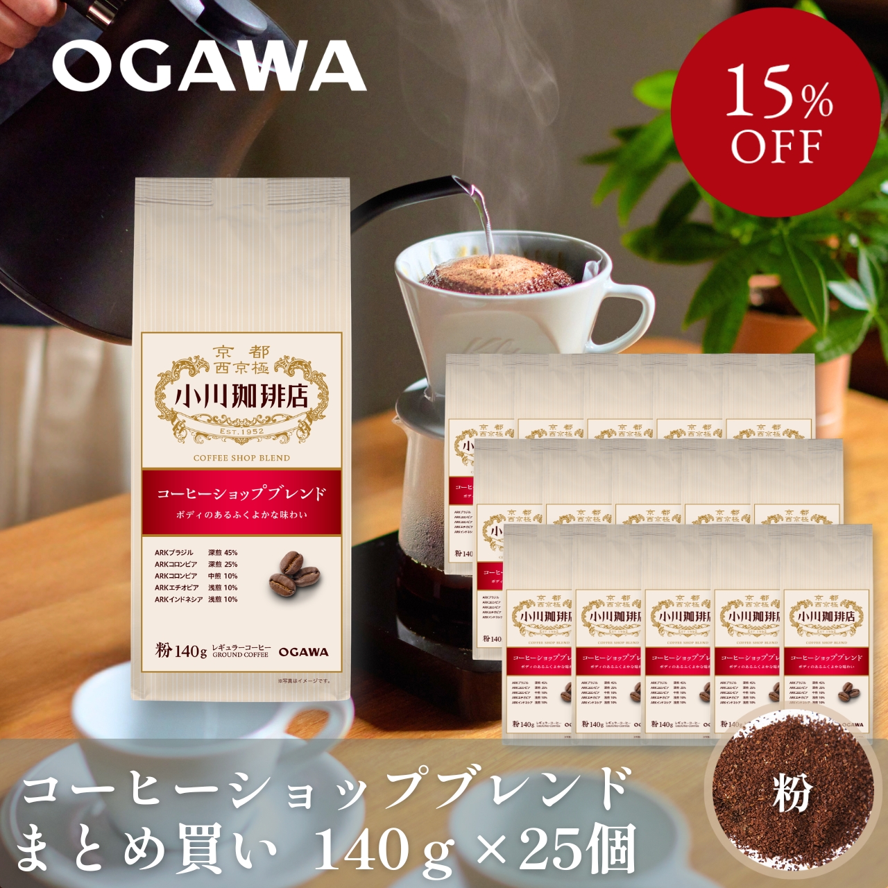 ■【まとめ買いでお得!】小川珈琲 コーヒーショップブレンド (粉)140g ×25個 レギュラーコーヒー お試し コーヒーメーカー 公式