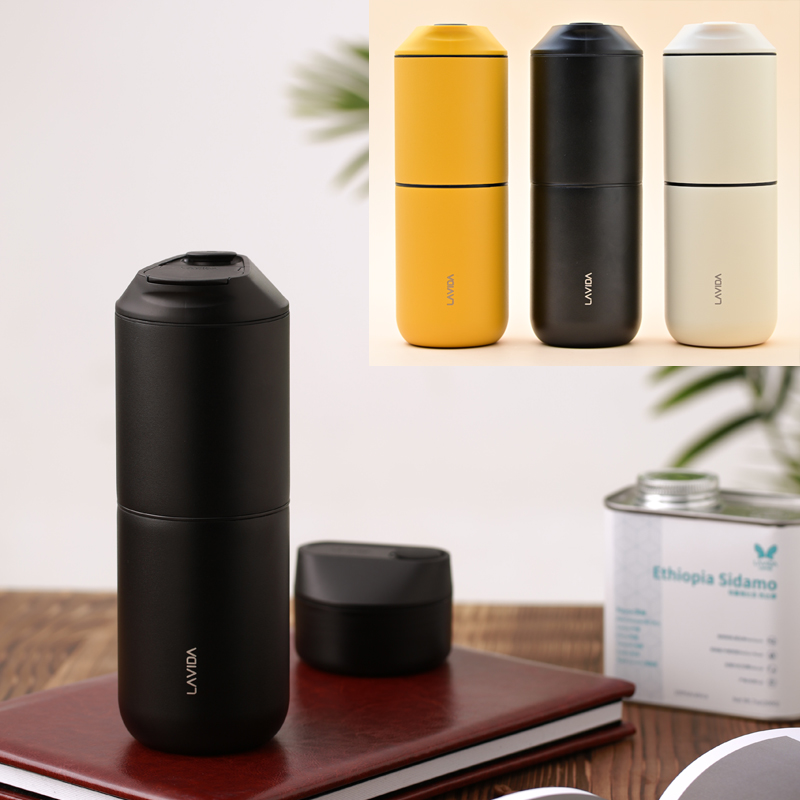 ATONCE(アトンス)オールインワン ポータブルコーヒーメーカー★電動ミル★コーヒーフィルター★コーヒードリッパー★真空断熱保温マグが、、、持ち運べるよう合体したコーヒーメーカーです。オフィス、アウトドア、ドライブの休憩中、、、ちょっとおいしいコーヒーを1杯飲みたいなんて思うことありますよね。そんな時に活躍してくれるオールインワンコーヒーメーカーです。サイズ:(本体)径81×高さ226mm、(豆ケース)径81×高さ58mm/容量:(ケトル)230ml、(カップ)380ml/セット内容:ATONCE本体、コーヒー豆ケース、掃除用ブラシ、軽量カップ、充電用USBケーブル、日本語取扱説明書/保証:1年間