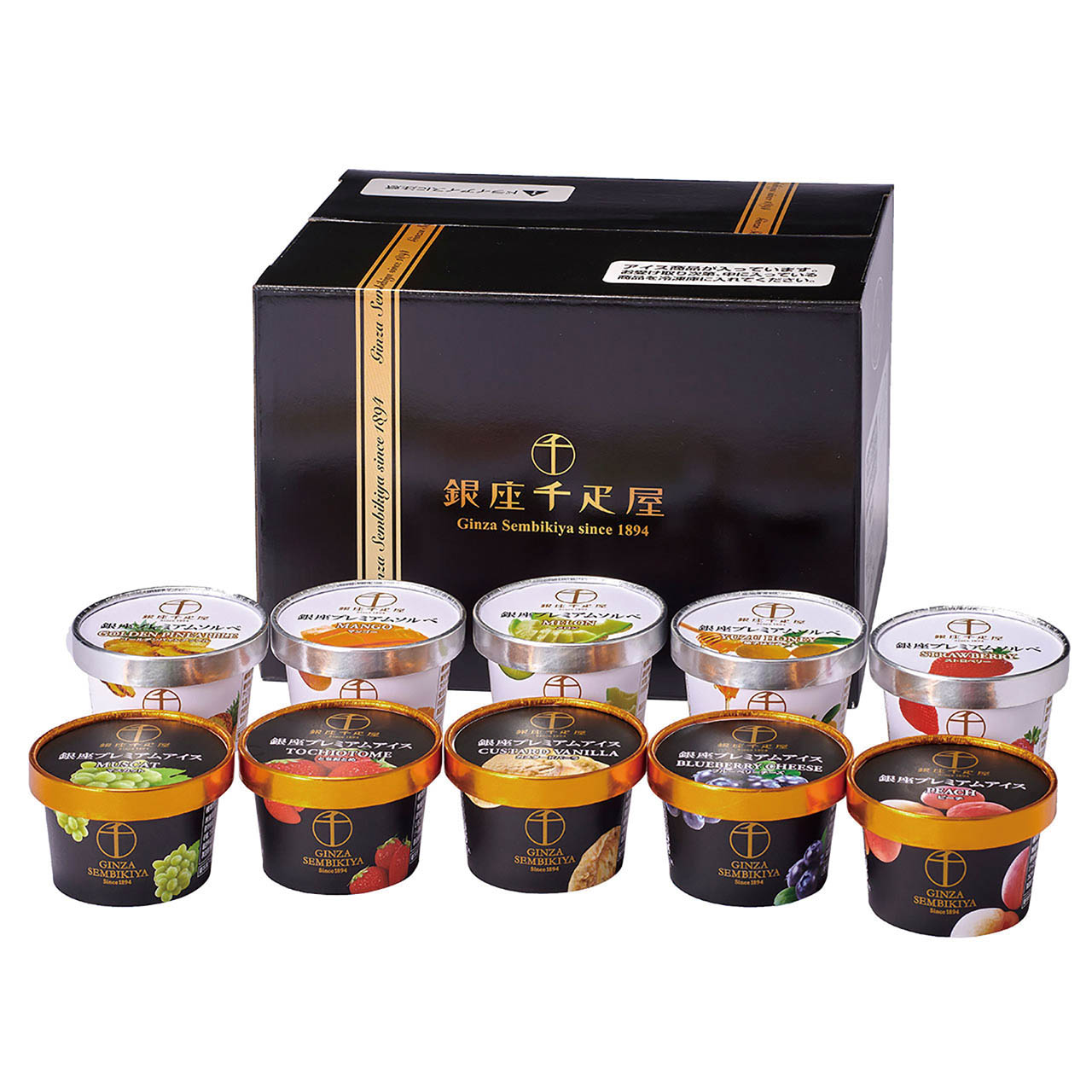 銀座プレミアムアイス&ソルベ PGS-139N 濃厚でなめらかなプレミアムアイスクリームと、ジューシーでフレッシュ感のある、プレミアムソルベの詰め合わせです。 ■商品詳細:プレミアムアイス(カスタードバニラ・とちおとめ・マスカット・ピーチ・ブルーベリーチーズ)、プレミアムソルベ(マンゴー・柚子はちみつ・メロン・ストロベリー・ゴールデンパイン) 90mlx各1個計10個 ■ブランド名:銀座千疋屋 ■製造生産地:[加工地]埼玉県 ■アレルゲン:乳成分・卵・もも ■箱サイズ:24×18.5×16.5cm ■重さ:約2600g <ご注文の前に>※商品ページ内の「産地直送品ギフトにつきまして」の画像を必ずご確認下さい。・メーカー都合によりラベルデザイン・仕様(量目等)変更する場合がございます。・メーカー直送の為、配送方法の指定が不可となります。ご注文後、配送方法が変更になる場合もございますので、予めご了承の程よろしくお願いいたします。※当店からご注文内容についてご連絡を行う場合がございます。必ずメールやお電話のご確認をお願いいたします。