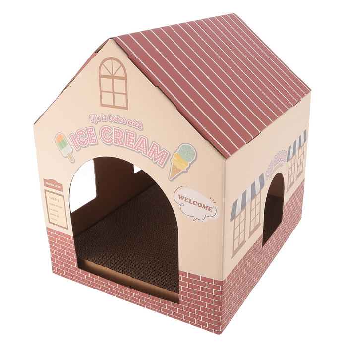 [サイズ]商品サイズ(?):幅370×奥行300×高さ380商品重量(kg):0.7梱包サイズ(?):幅370×奥行250×高さ395詳細サイズ:[素材]■紙[原産国]中国[カラー]ピンク[送料]全国一律送料無料(北海道・沖縄・離島は配達不可)[商品説明]組立品アイスクリーム屋さん風のPOPなデザイン!猫の爪とぎハウスアニメの世界から出てきたような、かわいらしいデザインの爪とぎ。お部屋の雰囲気がパッと明るくなります。コンテナの中に爪とぎシートを敷く仕様のため、落ち着いた環境で爪を研ぐことができます。爪とぎとしてではなく、ペットハウスとしても使えます。狭くて、暗いところが好きなネコちゃんにぴったりです!全面にプリントされたデザインのため配置も自由。様ーな角度から愛猫の様子を楽しめます。組み立てタイプで工程も少ないので、サクッと簡単に組み立てることができます。使わないときは折りたたんで隙間に収納できます。軽いので移動もラクラク。[備考]※お急ぎの場合は必ず事前に在庫確認を行って下さい。※メーカー倉庫より直送になります。