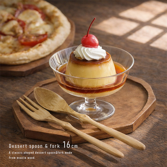 ■shesay アカシアの木で作った クラシカルなデザートスプーン&デザートフォーク(カトラリーセット デザートスプーン)