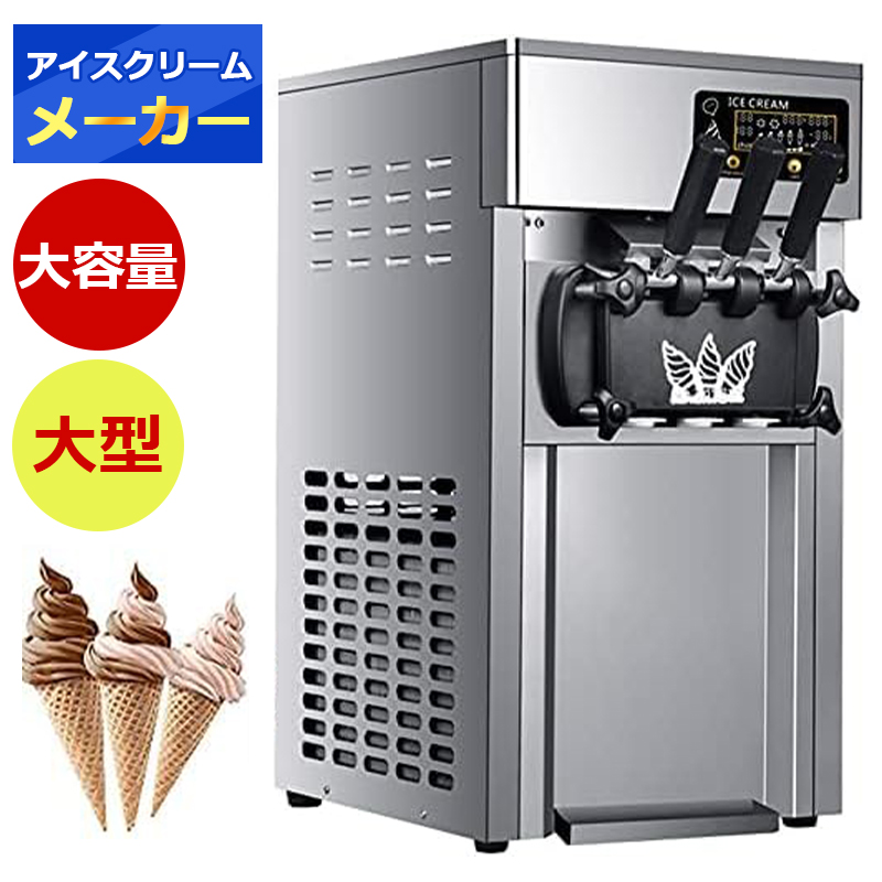 ■アイスクリームメーカー 業務用カウンタートップアイスクリームマシン 110V/1200W 3フレーバーステンレススチールソフト PSE認証済み