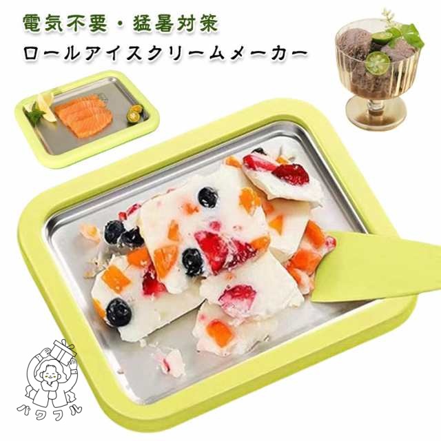 電気不要 ヘラ2つ付き ジェラート フローズンヨーグルト アイスクリームメーカー メーカー ハピロール ロールアイスクリームメーカー 手動 ヘラ2つ付
