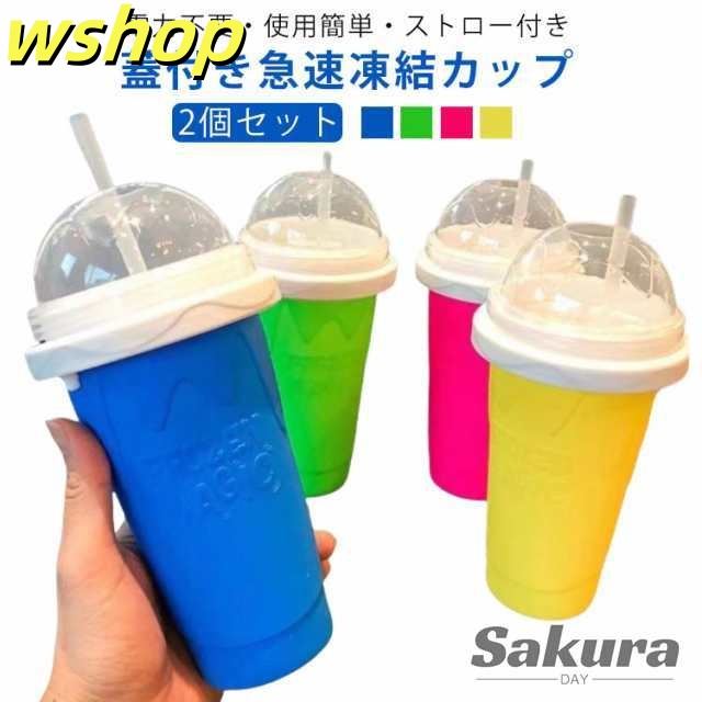 ■人気急上昇 売上急増中 蓋 電気不要 シャーベット スラッシーメーカー 保冷 シェイクメーカー かき氷機 カップ ストロー付き 【wshop フ