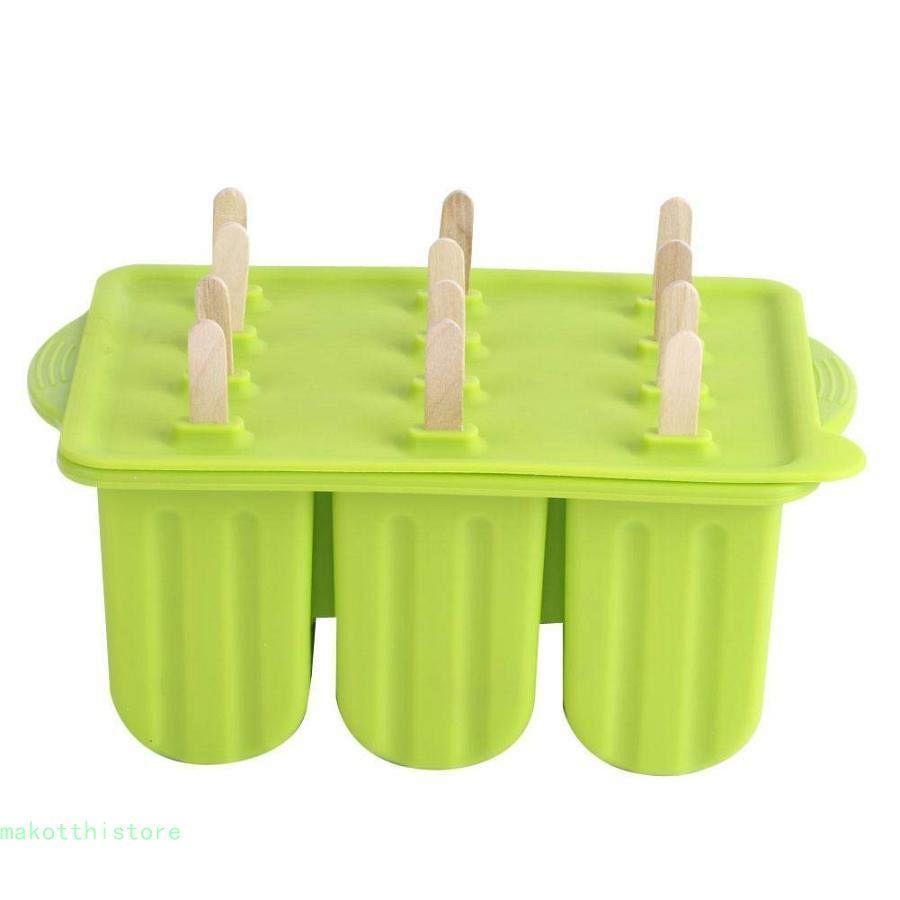アイスキャンディメーカー アイスクリーム型 アイス型 12個 立体シリコン氷形 蓋付き 手作り道具 アイス型 DIY 家庭用 自宅 (グリーン)