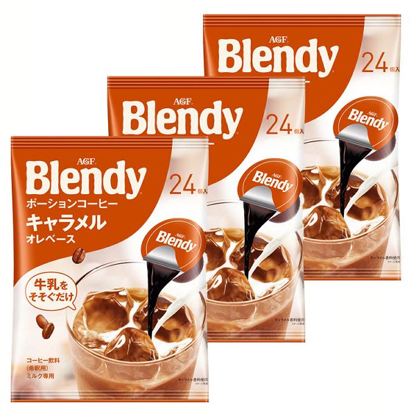 ■【3個セット】AGF「ブレンディ R」ポーションコーヒー キャラメルオレベース24個(濃縮) AGF 牛乳 ブレンディ blendy ポーション コーヒ