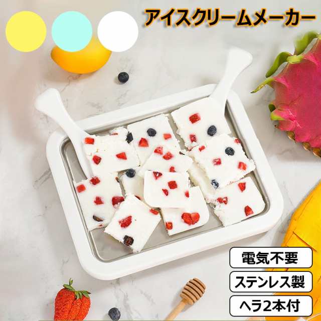 アイスクリームメーカー 電気不要 保冷 304ステンレス鋼 ヘラ2つ付き 手作り シャーベット ジェラート プレートタイプ 冷凍フルーツ かき氷機 ピクニック