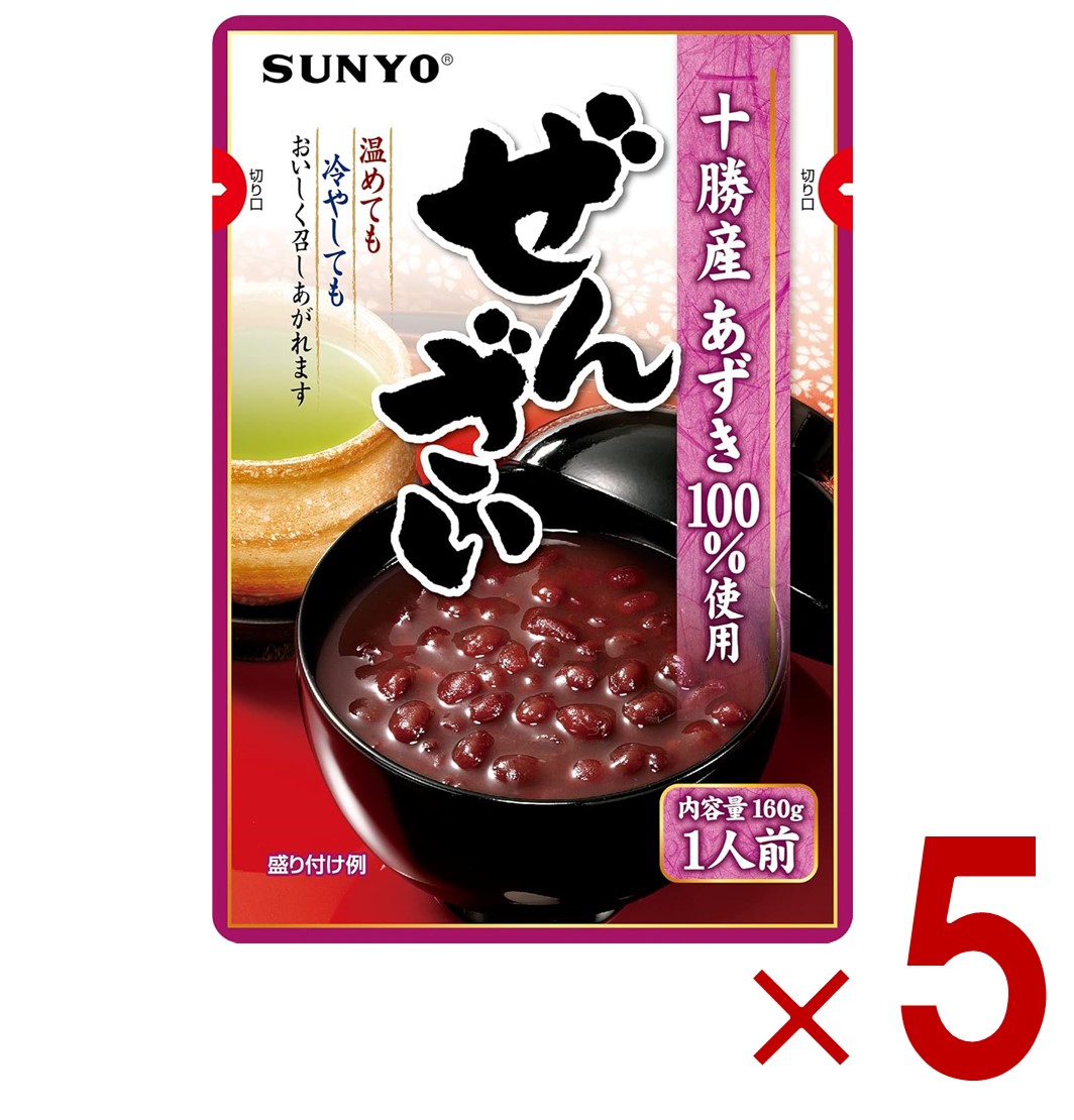 ■サンヨー堂 ぜんざい 160g 北海道 十勝産 あずき100% レトルト 小豆 スイーツ 非常食 保存食 常温保存 お徳用 家庭用 業務用 5個