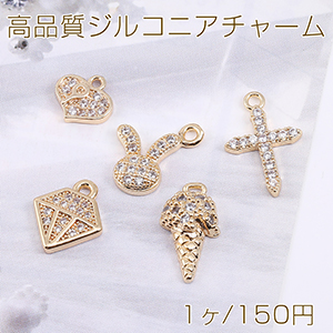 ■高品質ジルコニアチャーム 十字架/ダイヤ/アイスクリーム/兎/ハート型 ゴールド(1ヶ)