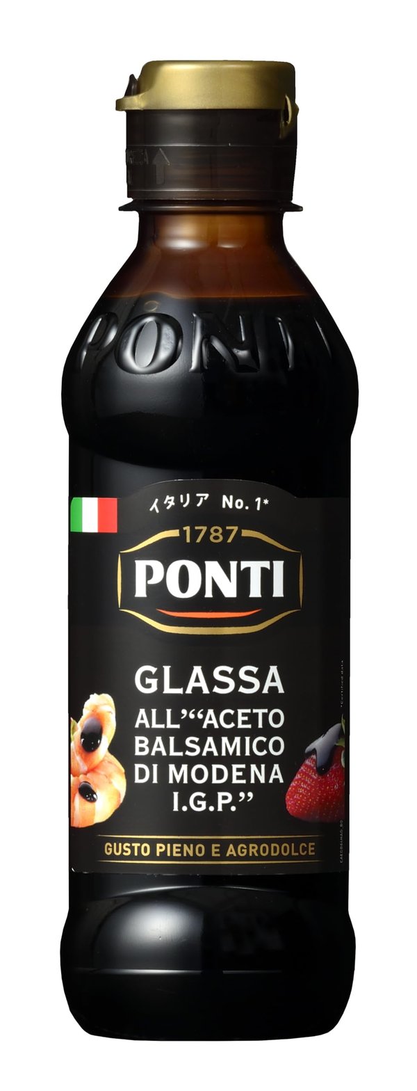 ※他店舗と在庫併用の為、品切れの場合は、ご容赦ください。商品仕様はメーカー都合などにより変更になる場合がございます。最新情報は個別にお問い合わせください。商品紹介 IGPモデナ産バルサミコと濃縮ぶどう果汁がもつコクと甘さのバルサミコクリーム(糖度約50°)。クリーム状で食材にしっかり絡むからおいしさアップ!アイスクリームやフルーツ、サラダ、肉や魚等幅広くお使いいただけます。ポンティのバルサミコクリームは、良質なぶどう原料を使用しているため、ぶどう由来の糖度で十分な甘さがあります。 手作りしようとするとなかなか面倒なバルサミコクリームですが、ポンティのバルサミコクリームなら、焦がさないようにじっくりと煮詰めたり、コクや粘度を出すために砂糖を入れたりなどの手間暇をかけることなく、簡単にワンランク上の味わいに! イタリアNo.1のシェアを誇り、230年以上の歴史を持つワインビネガーの老舗 ポンティは1787年、ジョバンニ・バチスタ・デル・ポンテ氏により北部ピエモンテにて創業された老舗ビネガーメーカーです。 ワインの名産地、ピエモンテ州ゲンメに本社があり、自社工場でワインからビネガー製品を製