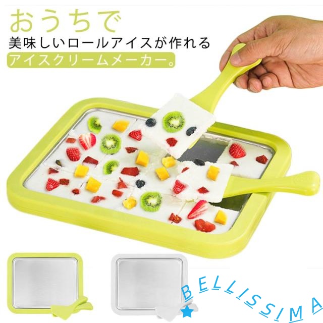 ■家庭用 ハピロール アイスクリームメーカー ロールアイスクリームメーカー ステンレス製 シャーベットメーカー ヘラ2本付 おしゃれ 自宅