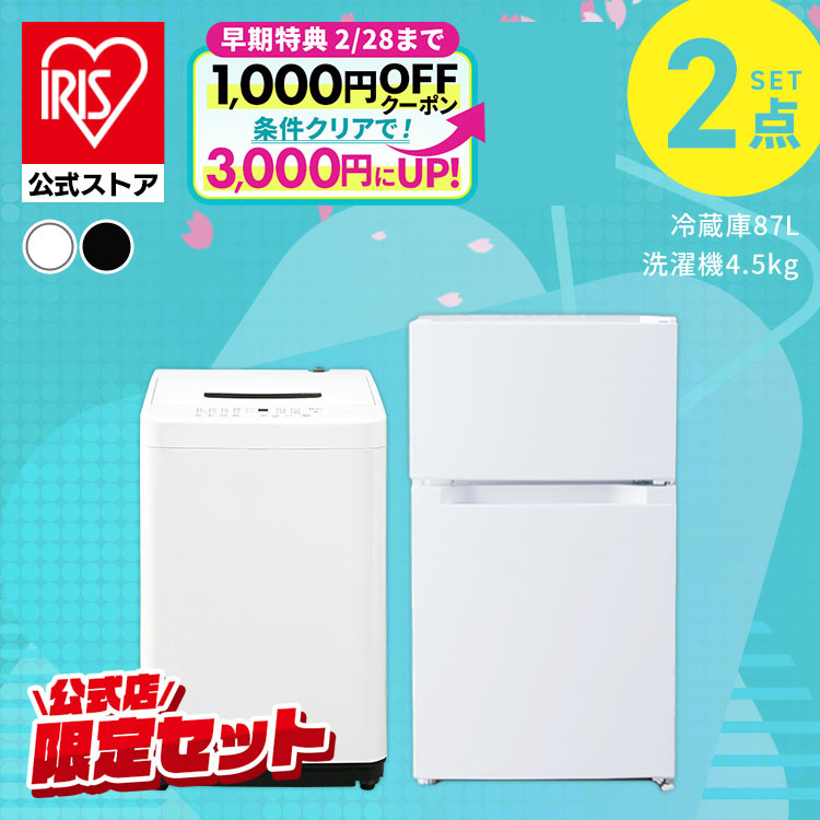 ■家電セット 2点セット 冷蔵庫 87L 洗濯機 4.5kg アイリスオーヤマ 新生活 安心延長保証対象