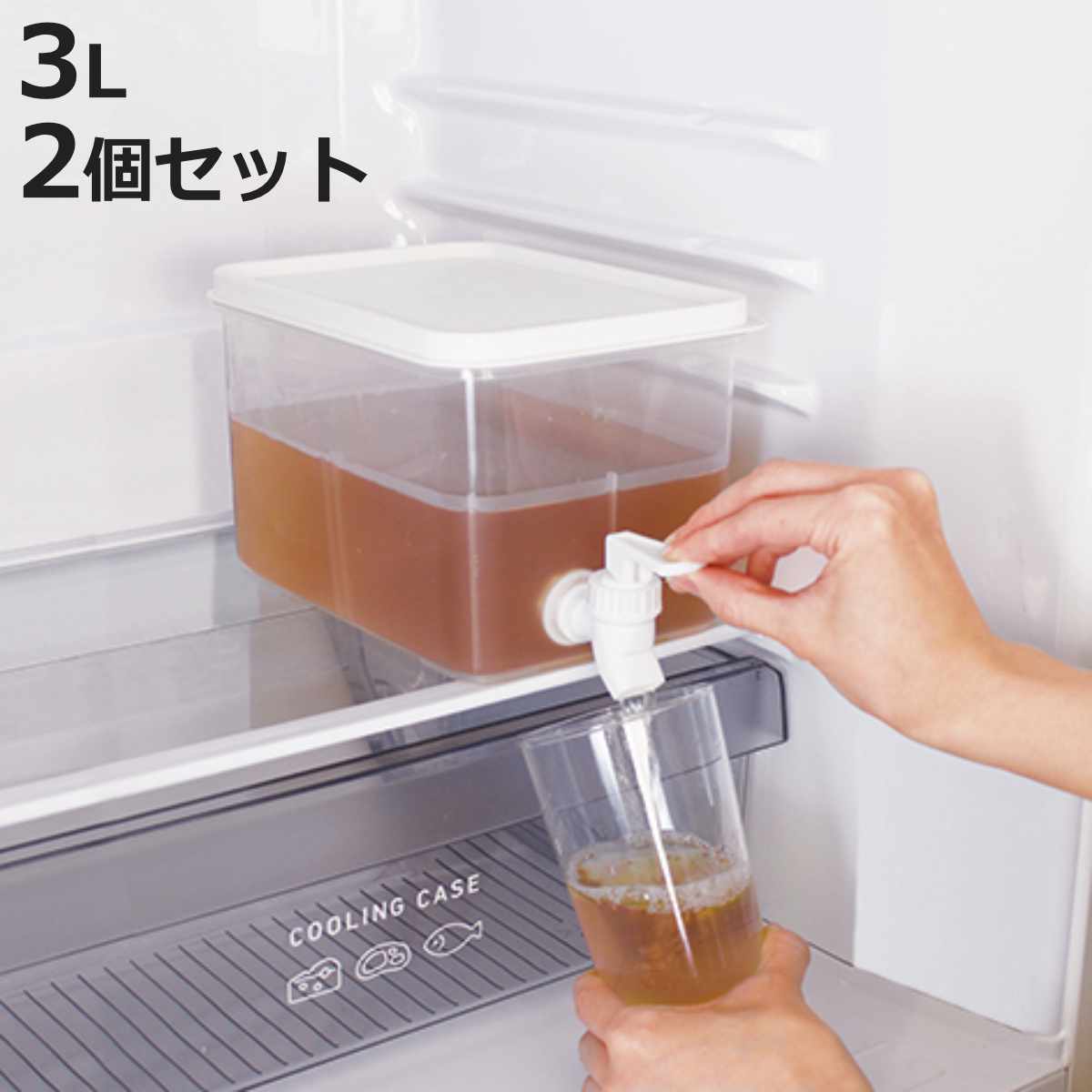 ■ドリンクサーバー 蛇口付き 3L 冷蔵庫 プラスチック 2個セット ( 冷水筒 麦茶ポット 水差し 冷水ポット お茶入れ 省スペース 四角 麦茶
