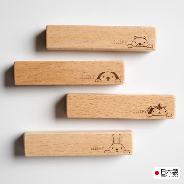 ■日本製 木製「SLEEPY動物レーザー刻印 マグネットバー4本」 冷蔵庫 マグネット バー インテリア リビング キッチン 玄関 天然木 メモ