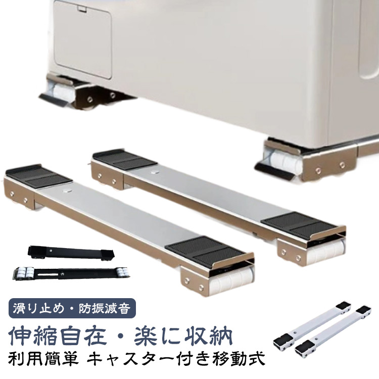 ■滑り止めマット 移動 2個セット 冷蔵庫 キャスター 置き台 台 2個セット 伸縮式 キャスター台 調節可能 洗濯機 洗濯機スライド台 かさ上