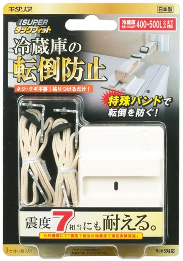 ■北川工業 キタリア 冷蔵庫用転倒防止固定具 【SUPERタックフィット】 冷蔵庫150KG以下まで対応 日本製 4個入り TF-VCB-RE-4B 白