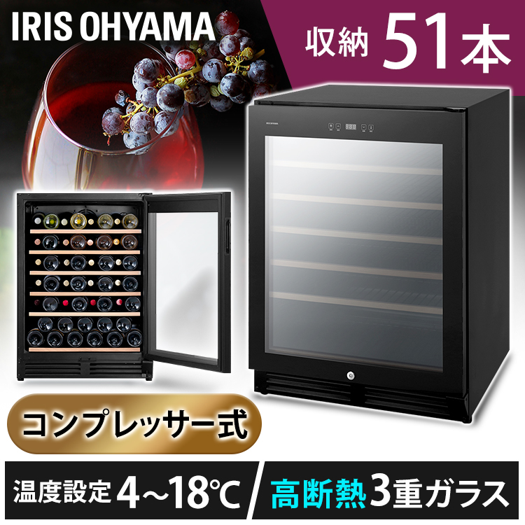 ■ワインセラー51本 IWC-C511A-B ブラック ワインセラー ブラック ワインクーラー 家庭用 庫内灯付き コンプレッサー式 冷却力 ワイン 自宅