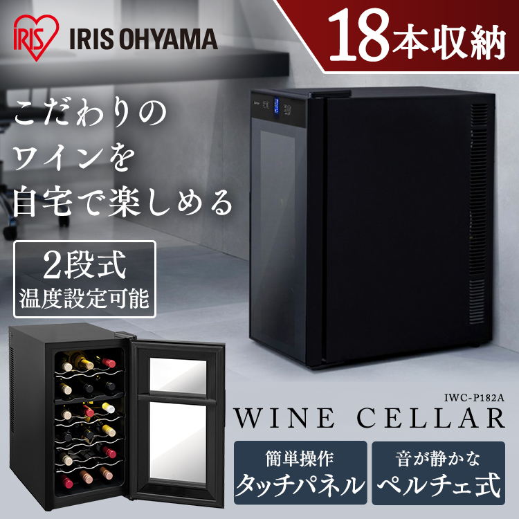 ■ワインセラー ペルチェ式ワインセラー 50L ブラック IWC-P182A-B ワインセラー ワインクーラー 家庭用 静音 ペルチェ式 庫内灯付き 18本