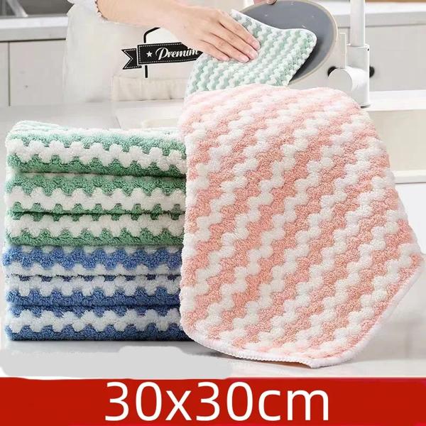 30x30cm kitchen dishwashing cloth superfine fiber water absorbent cleaning cloth for lazy people5pcs Product parameters Name: Kitchen dishwashing cloth Specification: 30 * 30CM Color: random color 5pcs Material: superfine fiber
