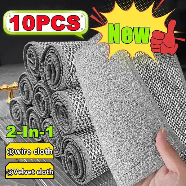 ■マジック両面クリーニングクロス、スチールワイヤー、竹炭、食器洗い機、錆びた除去剤、描画パッド、2-in-1アップグレード、新しい
