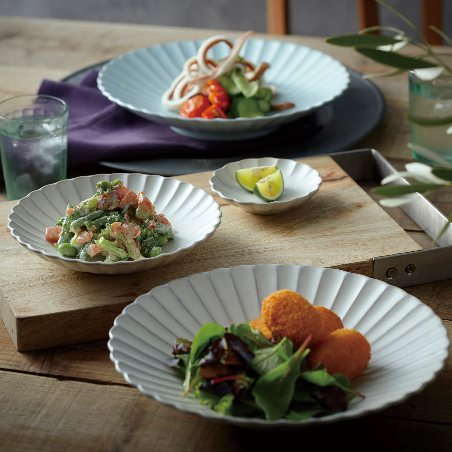 落ち着いた色合いとマットな質感が素敵どんな料理にも合わせやすく、1つあるだけでテーブルが華やかに径23cmとメインディッシュを盛り付けやすいサイズ感少し深さがあるので、汁気のある料理も盛り付けられます「日々の暮らしを楽しむ」というコンセプトで開発瀬戸焼