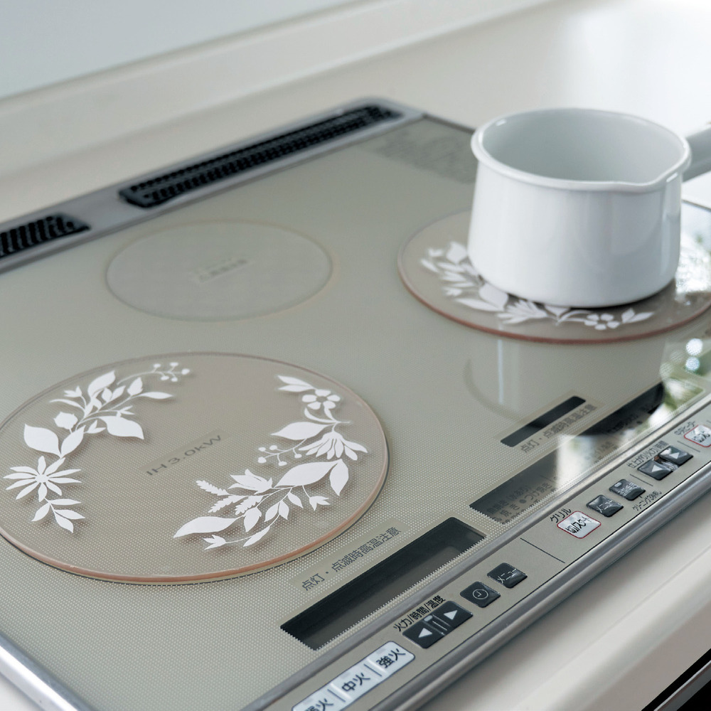 IH調理器の天板は調理中のふきこぼれや焼け焦げなどで意外と汚れるもの...おしゃれな柄でIH天板の汚れを防いでくれるIHカバーガラスなので色やにおい移りが少なく、気軽に丸洗いOKシリコーンリングと併せてご使用いただくとガラスカバーがずれにくくて便利ガラスカバー・シリコーンリングどちらも食洗機で洗うことができますガラスカバーのみでも使用可能。耐熱性に優れているので、ガラスのみ使用時は強火調理もOK(※3.2k W未満のIH調理器の場合)ガラスカバーはベルメゾンオリジナル柄#IHマット#IHコンロカバー