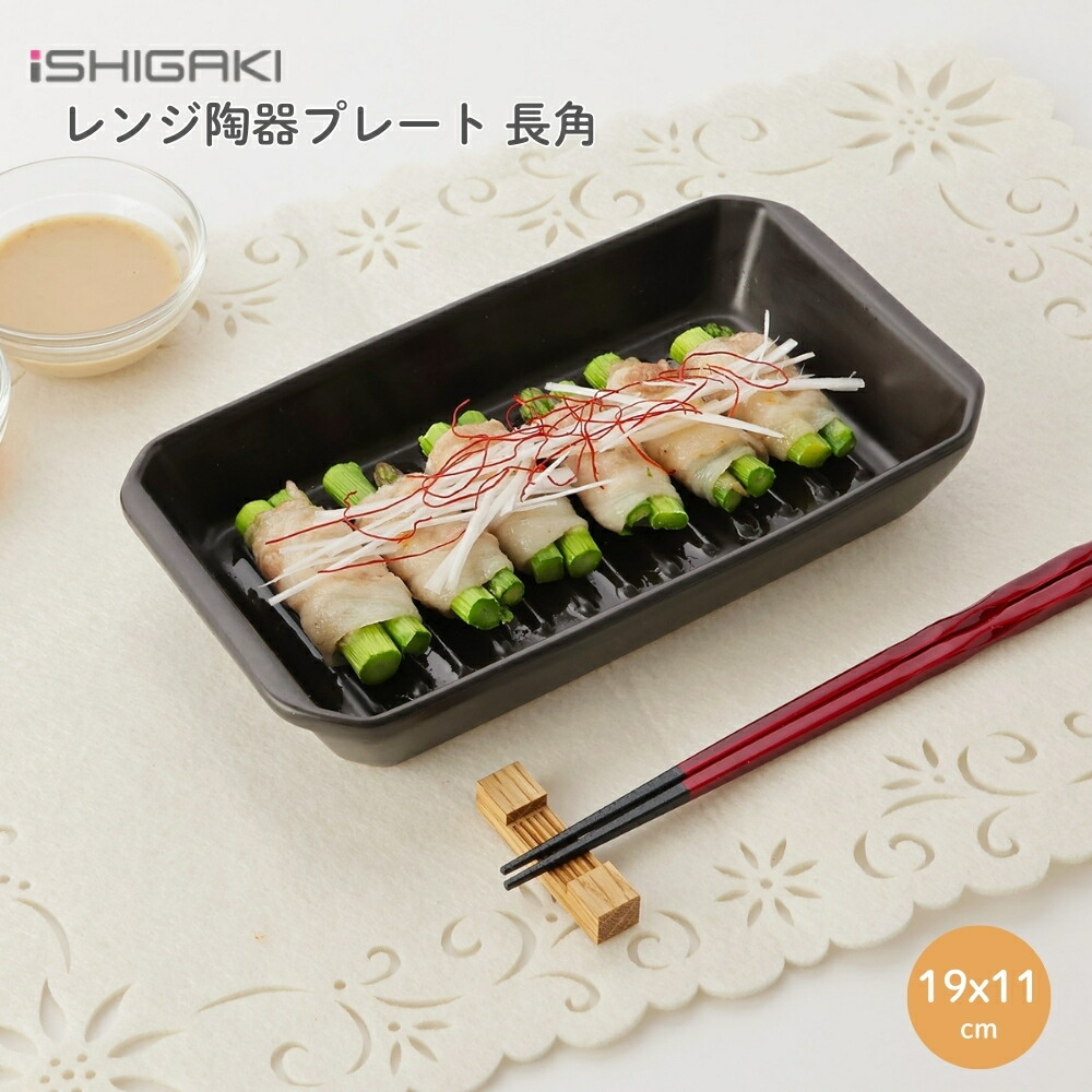 ■イシガキ産業 DLレンジ陶器プレート 長角 19x11cm 電子レンジ調理器 焼き魚 焼く 遠赤外線 オーブン 魚焼きグリル 食器乾燥機 食器洗い乾