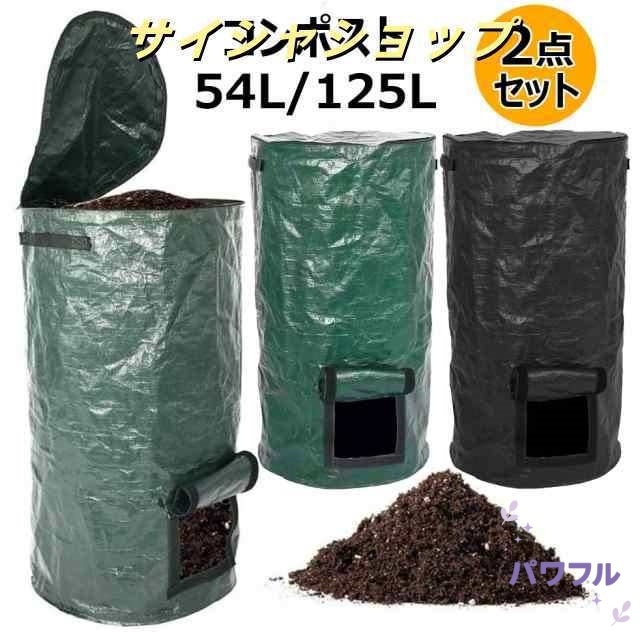 コンポスト 堆肥袋 2点セット 肥料袋 容器 落ち葉 ゴミ箱 ガーデン 堆肥作り 発酵 果物 ゴミ処理 エココンポスト 植え袋 大容量 54L 125L PE布製 生ごみ処理 自家製有機発酵肥料 廃棄物処理コンポスター 防水 耐久性 栽培袋 野菜栽培農業 林業 園芸用 菜園用