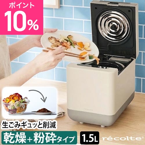2〜3人分の生ごみを乾燥・粉砕して大幅減量。進化した脱臭フィルターでニオイを抑え、キッチンに馴染むコンパクトでおしゃれなデザインのレコルト製生ごみ処理機です。
