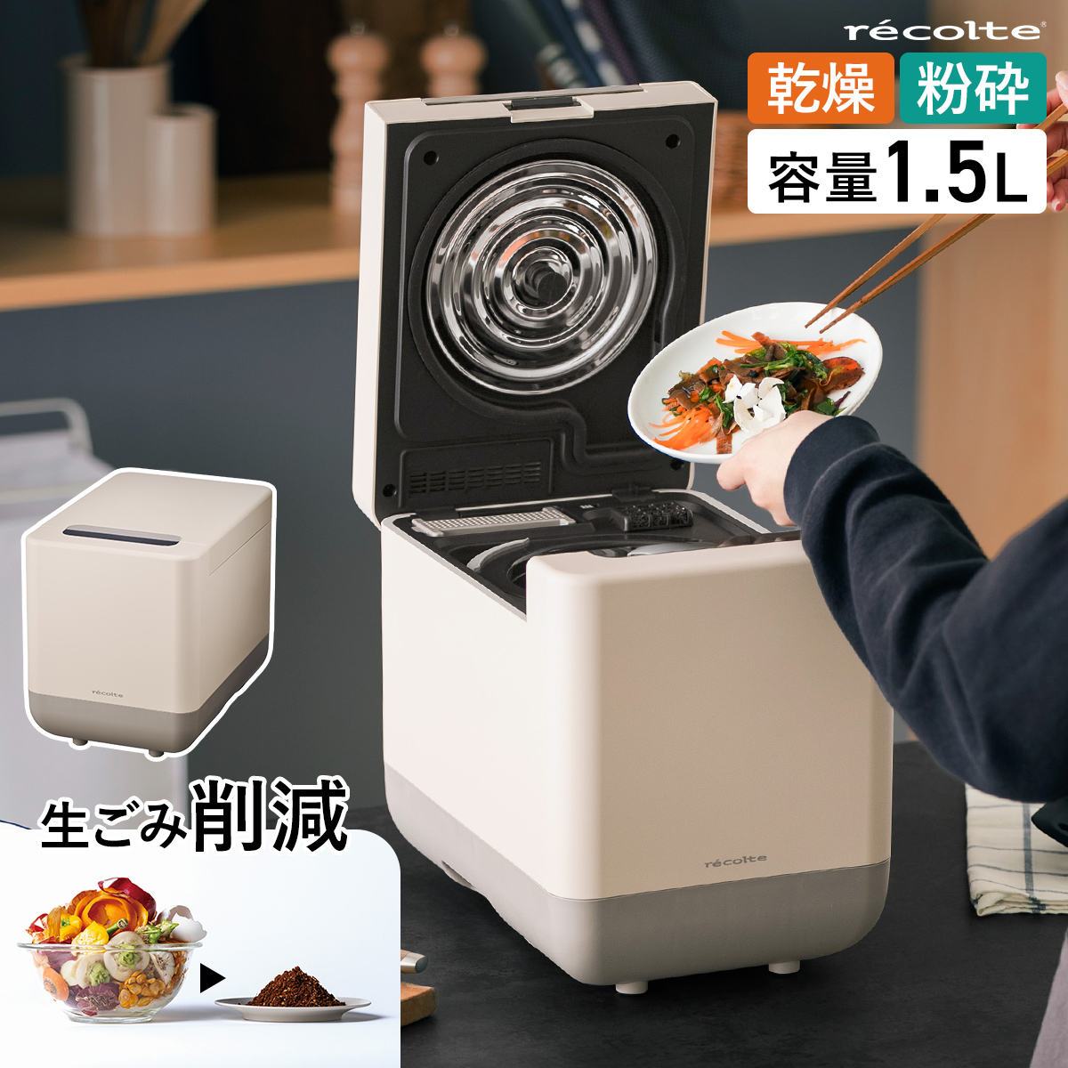 ■[ recolte コンパクト生ごみ処理機 ]生ゴミ処理機 助成金対象 レコルト 乾燥式 生ごみ乾燥機 脱臭フィルター 生ゴミ乾燥機 自動 1.5L