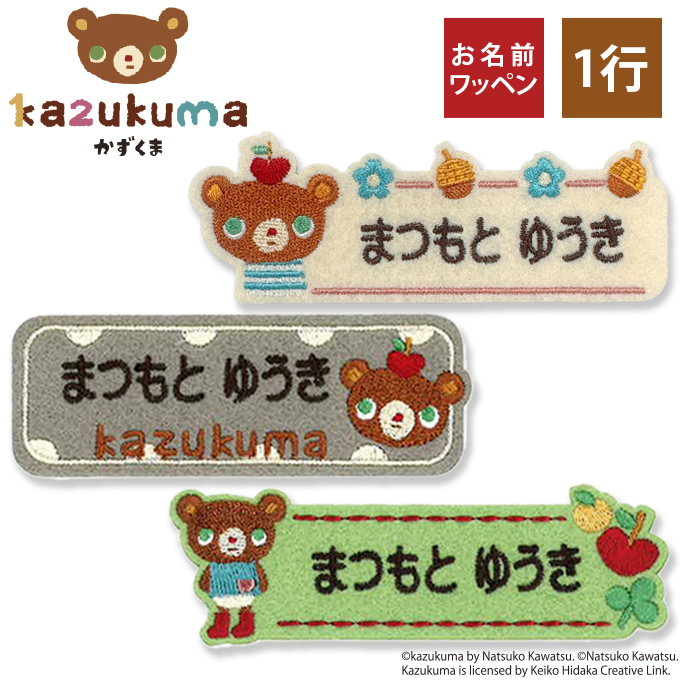 ■お名前ワッペン かずくま kazukuma 数字 絵本 キャラクター 1行 3枚セット ネームワッペン アイロン 入園 刺繍 プレゼント OR