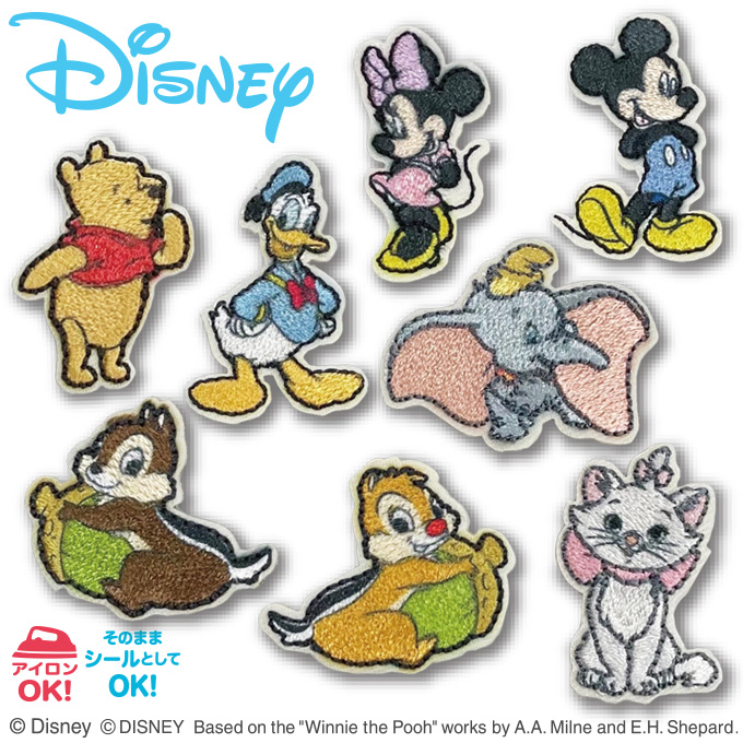 ■ミッキー&フレンズ チップとデール くまのプーさん ダンボ おしゃれキャットマリー ミニワッペン ディズニー アイロン シール かわいい