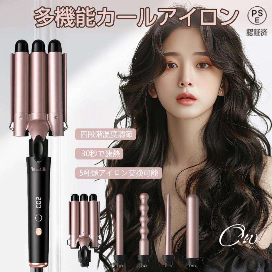 ■ヘアアイロン 多機能 5way 巻き髪アイロン コテ ヘアケア 美容師 ツヤ 艶 30秒急速加熱 傷まない カール ヘア アイロン 美髪 軽量 コンパ