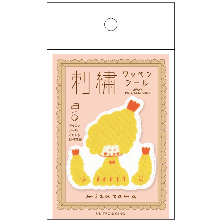 【商品説明】○山形県在住のイラストレーター、「mizutama」さんと、くらしにハッピーをプラスする雑貨ブランド「UN TROIS CINQ(アントワサンク)」のコラボレーション商品です。シールとアイロンワッペンの2つの使い方ができるシールです。ノートやスマホなどにそのまま貼ってデコレーションしたり、服や布小物にアイロンワッペンとして貼り付けたりして、お気に入りのアイテムを簡単にデコレーションすることができます。イラスト部分は、触り心地の良い糸で織られたツイル生地に、プリントで細かなところまで再現しました。【詳細】・サイズ本体:約60×60mm・素材:表面:ツイル生地(ポリエステル100%)、外周:レーヨン糸、裏面:ポリオレフィン系樹脂・EVA系樹脂