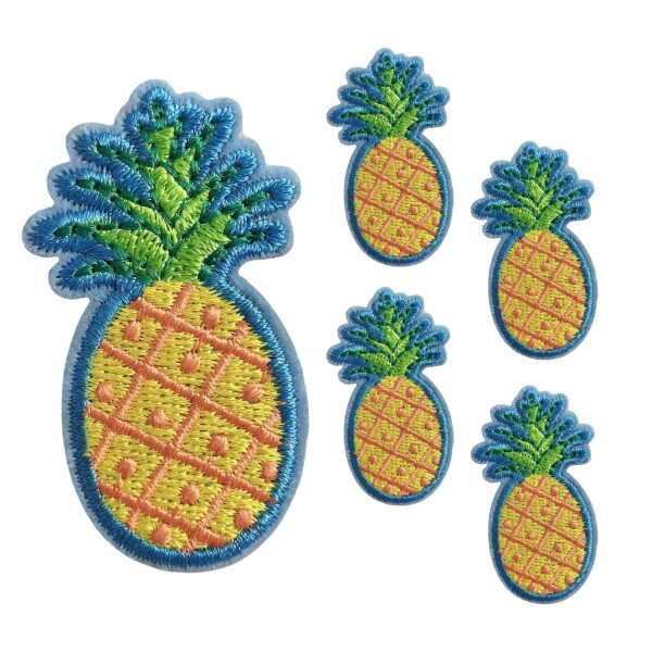 ■ワッペン アイロン 刺繍 フルーツ パイナップルB アップリケ 小さめ 5枚セット カラフル 果物 おしゃれ かわいい 入園 入学準備 NYANDELM
