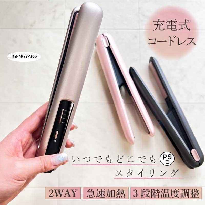 ■ミニ コードレス ストレート アイロン カール USB 軽量 コンパクト 収納 2way 前髪 コテ 携帯用 旅行 持ち運び