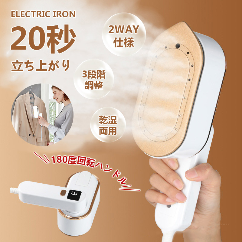 ■アイロン スチーム ハンディ 衣類スチーマー 2WAY 20g/minパワー アイロンスチーマー 軽量 恒温 強力スチーム 15秒立上り PSE認証済み 除
