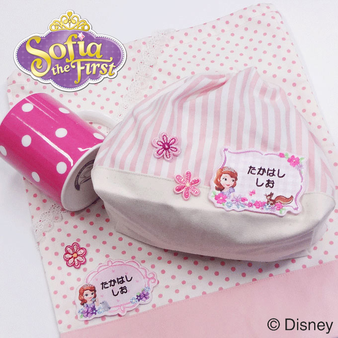 ■お名前ワッペン ちいさなプリンセス ソフィア ディズニー キャラ 2行 3枚セット ネームワッペン アイロン 入園 刺繍 プレゼント OR