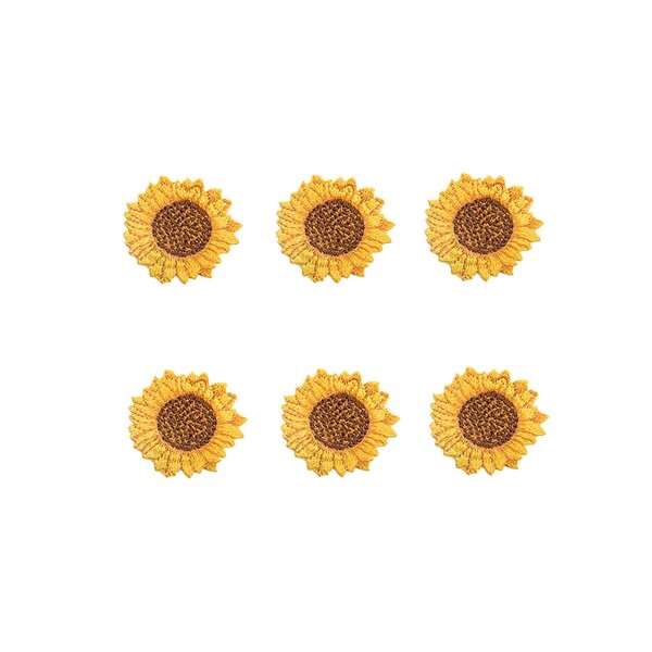 ■ワッペン アイロン アップリケ 女の子 子供 小さい 刺繍 入園 かわいい (小さい 向日葵 6点 セット)