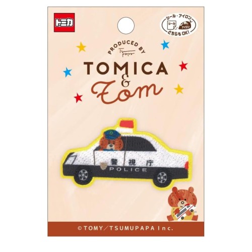 パイオニア トミカ つむぱぱ パトロールカー ワッペン 1個付き 縦34mm×横63mm シール・アイロン 両用タイプ TOM650-TOM60