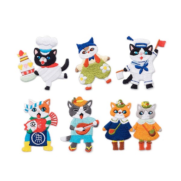 ■ワッペン アイロン 男の子 女の子 おしゃれ アイロンワッペン ベルクロ アップリケ 刺繍 (猫 6点セット)