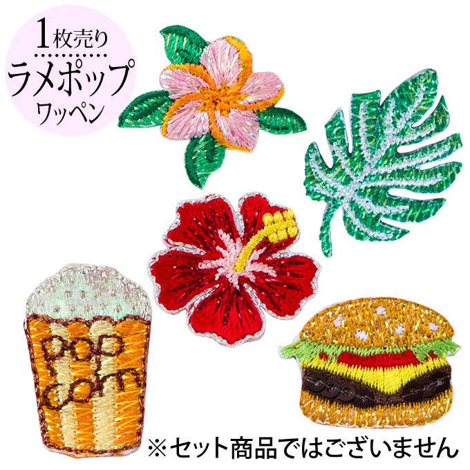 ■ワッペン ラメ ポップ アメリカン ハワイアン アイロン 刺繍 マーク シンプル プレゼント 服 ワンポイント ハンドメイド 目印
