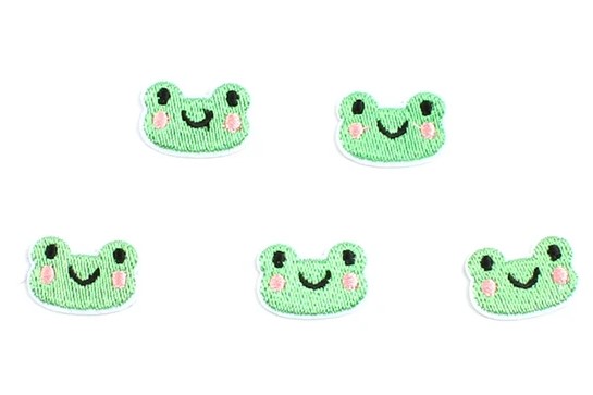 ■カエル ワッペン 5枚セット かえる アップリケ キャラクター おしゃれ 子供 向け 膝 かわいい 刺しゅうワッペン パッチ アイロン 刺繍 補