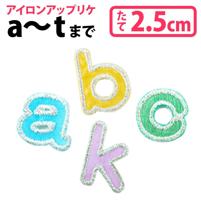 ■文字ワッペン アルファベット 英語 記号 カラフル 小文字 1枚 名前 アイロン 男の子 女の子 名入れ お名前 文字 アップリケ CP